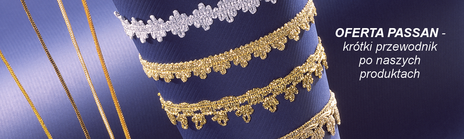 Asortyment pasmanterii PASSAN został stworzony z myślą o potrzebach oraz oczekiwaniach klientów z branży kreatywnej oraz każdym, dla kogo szycie to hobbystyczne zajęcie. Wszystkie produkty i akcesoria wpisują się w aktualne trendy odzieżowe lub wnętrzarskie i zostały tak dobrane, aby pasować zarówno do indywidualnych gustów naszych klientów, jak i tego, co dyktuje moda. Idealne dodatki znajdą tutaj miłośnicy klasyki, a także zwolennicy bardziej nowoczesnych rozwiązań.