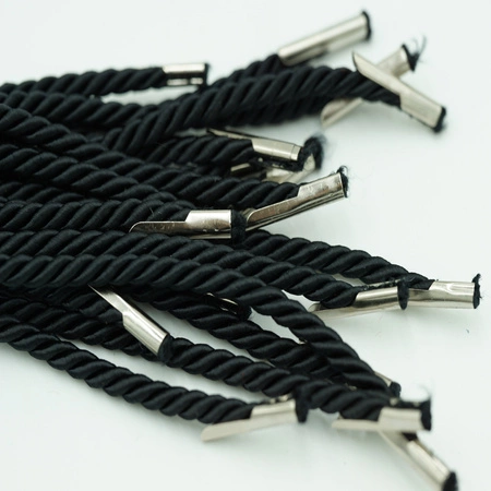 Cord tied with metal T-lace ends for decorative bags. No need to tie knots.