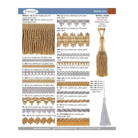 Metalic line to kolekcja produktów wykonanych z folii metalizowanej. W jej skład wchodzą tasiemki, frędzle, chwosty oraz sznury.
